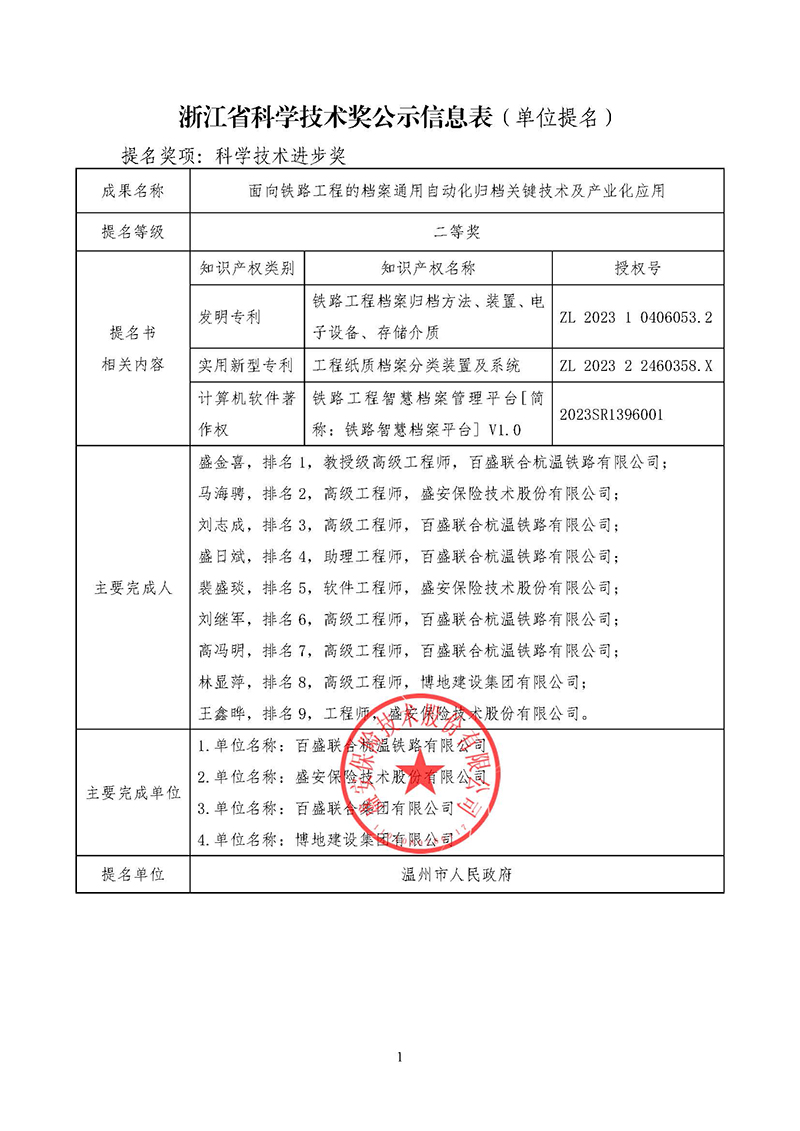浙江省科学技术奖公示信息表